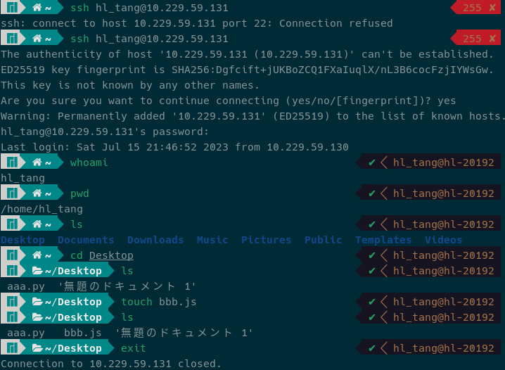 之后的命令行操作就相当于是在敲远程机器的终端。