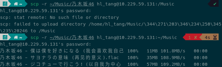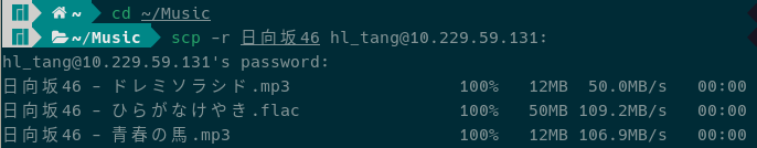 1 | scp -r 日向坂46 hl_tang@10.229.59.131: |