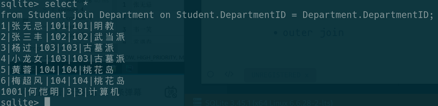 连接条件写在join下的on里,如果不带on条件的话,就和from多表where为空,简单的笛卡尔积一样