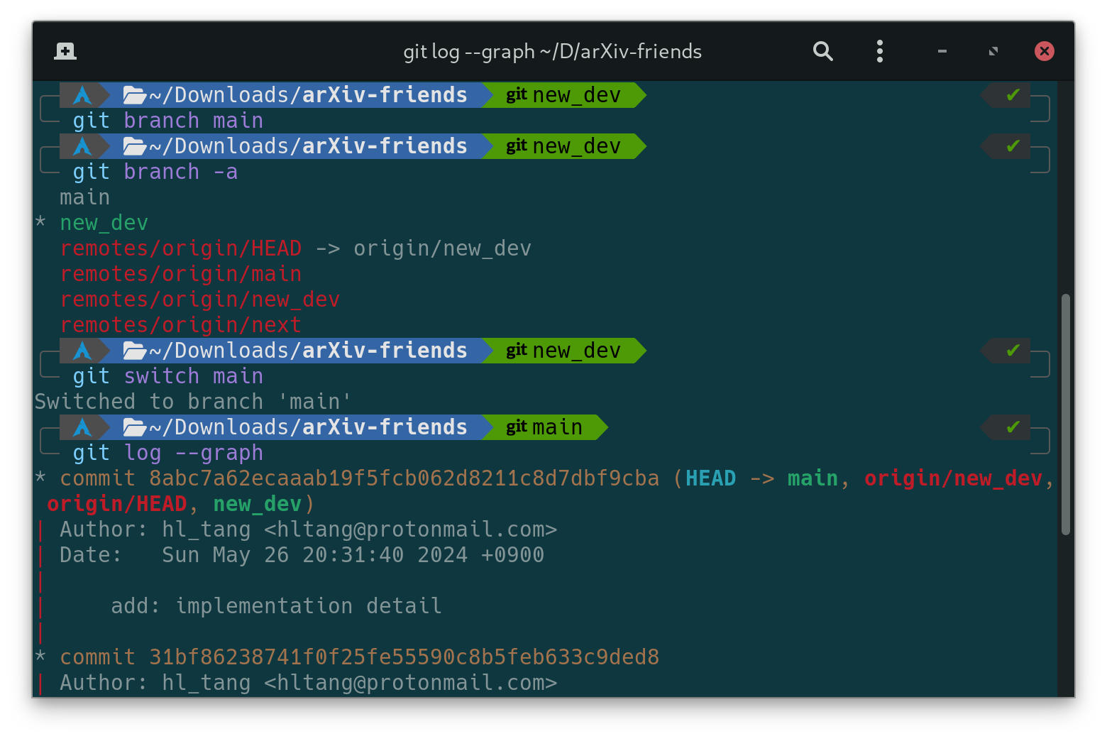 1 | git branch -vv |